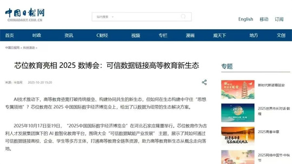 芯位教育在本届数博会上的参展动态受媒体广泛关注,累计获得超百篇相关报道。其中,涵盖了新华网、中国日报网等权威媒体,以及获得了新浪、网易、搜狐等门户网站的同步聚焦。