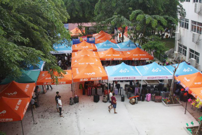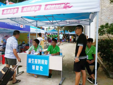 迎新现场搭上凉棚为新生遮阳