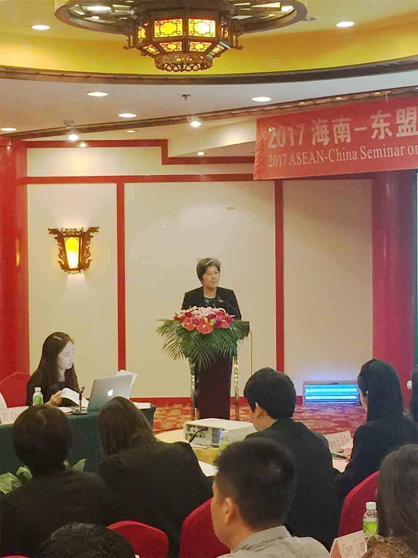 研讨会上中国-东盟中心杨秀萍秘书长和海南省教育厅黎岳南副厅长分别致辞。杨秀萍秘书长希望通过此次研讨会能增进东盟国家高校访问团与海南在人才培养、学术交流等方面的合作。黎岳南副厅长介绍了海南与东盟国家在科研教育领域的合作,相信通过此次研讨加强和东盟国家之间的合作。