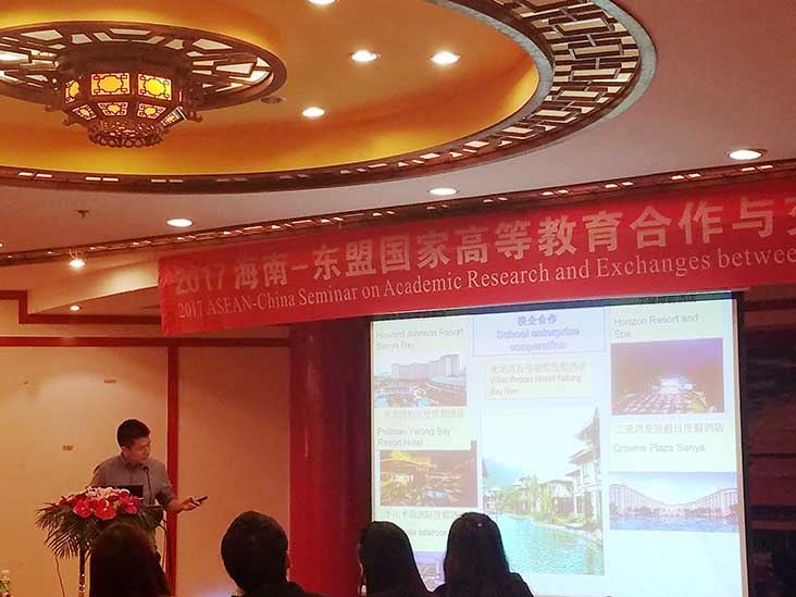 2017年4月26日,海南—东盟国家高等教育合作与交流研讨会在海口召开。来自柬埔寨、印尼、老挝、马来西亚、缅甸、泰国、越南等东盟国家的教育主管部门和高等院校代表以及海南19所院校代表80余人出席。我院副院长欧阳莉、外事处王新龙、旅游系杨戈受邀参加会议。