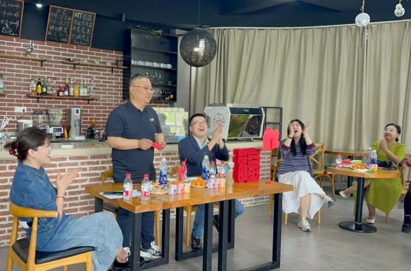 为让坚守岗位的教职工感受到浓浓的年味,团拜会特别设置了“新春上上签”互动游戏环节。桌上一支支精致的签筒里,装满了写有“好运签”和“挑战签”的福签。大家轮流抽取,笑声不断。抽到“好运签”的老师喜笑颜开,收获全场掌声;抽到“挑战签”的老师则大方献艺,或用家乡话拜年,或即兴献唱一句新春歌曲,或分享过去一年最难忘的温暖瞬间。小小的游戏,让现场气氛迅速升温,欢声笑语回荡在整个会场。