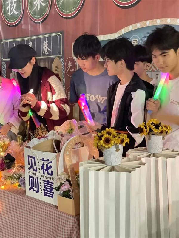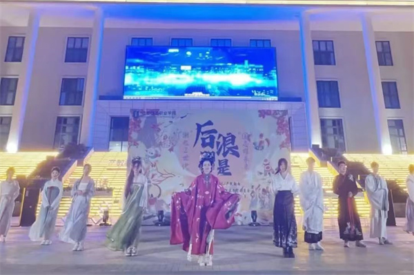 由“后浪即是”造景进入游园夜,可依次前往各学院的专业“站”——文化“馆”——游戏“坊”(集章兑换奖品),观看文艺“汇”。