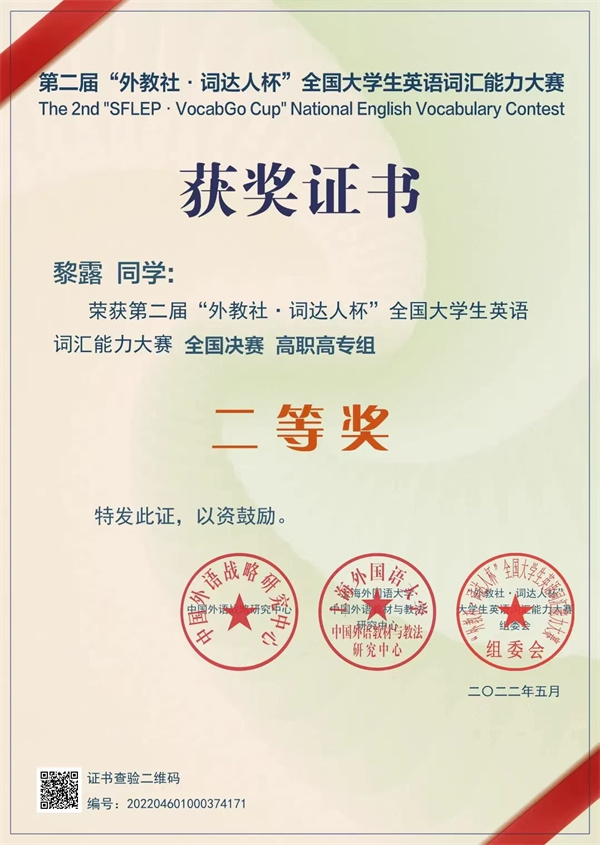 省赛、国赛奖项由大赛组委会评定并颁发获奖证书,证书通过“词达人”系统发放。
