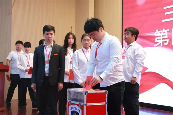 王海伊同学表示,新一届学生会必将是承前启后的一届,更会是开拓创新的一届。作为团员和学生代表,我们一定要清醒地认识到自己的社会责任和历史使命。发扬学校“自立更生、合力更新、有容乃大、不懈则优”校训精神,高擎“请党放心、强国有我”的理想旗帜,以锐意创新的勇气、敢为人先的锐气、蓬勃向上的朝气,做有理想信念、有道德情操、有家国情怀,有责任担当,有过硬本领的“五有”理工人。