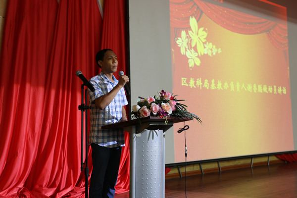 吉阳区教科局基教办主任谢香聪作动员讲话