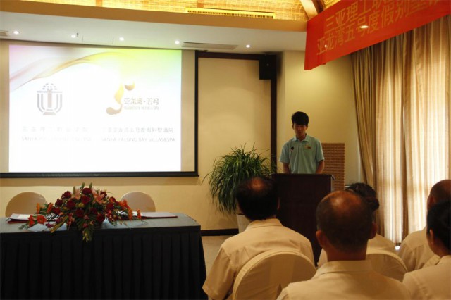 亚龙湾五号度假别墅酒店副总经理卢志义先生致辞,介绍了五号度假别墅酒店对人才的迫切需求以及三亚酒店行业的发展情况,充分肯定校企合作的重大意义。