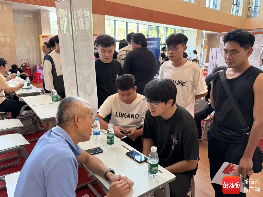 当天,学生们身着整洁得体的正装,手握精心准备的简历,有序进入场馆,展现出海南学子良好的素养和精神风貌。他们积极与企业招聘人员交流,主动了解岗位详情、薪资福利和职业发展路径等信息,根据自身专业和职业规划精准投递简历。招聘会现场气氛热烈。