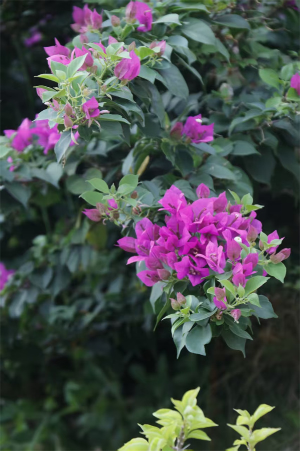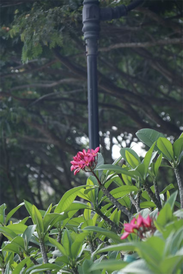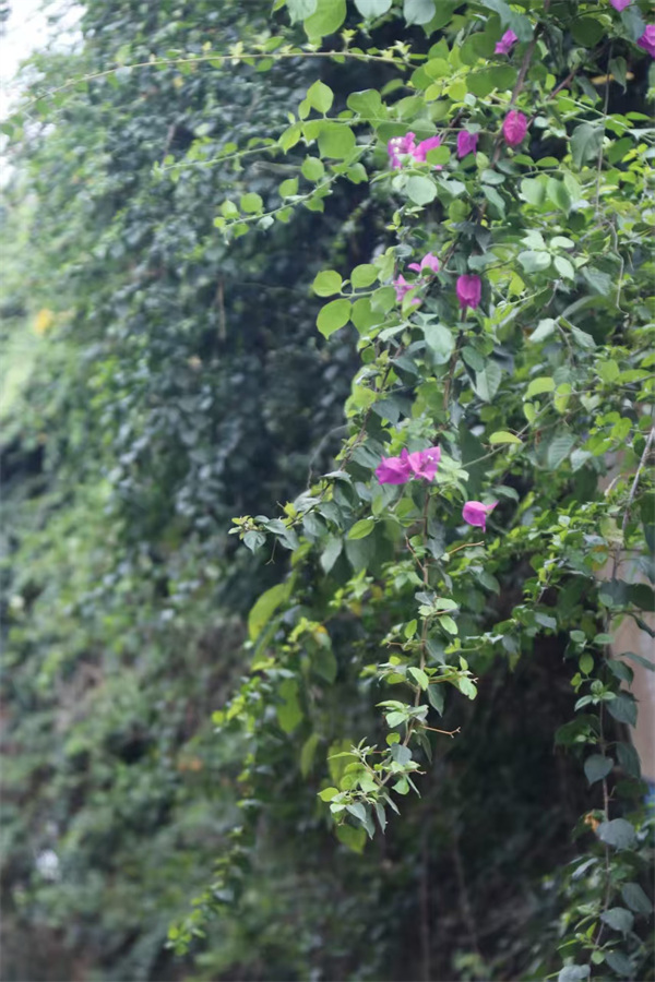 漫步校园,三角梅于枝头肆意绽放,那一抹抹艳丽的紫,似燃烧的热情。一旁枝叶翠绿繁茂,生机勃勃。转角处,夹竹桃悄然露出几朵红花,别具风情。走进图书馆,《城南旧事》静静陈列,封面绘景如诗,仿佛诉说着过往故事。这一路的花草与书籍,交织出校园独有的宁静与美好,令人沉醉。