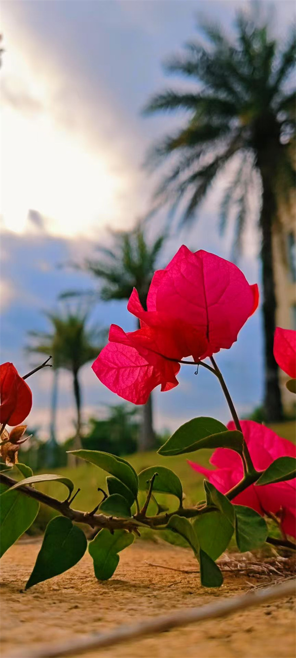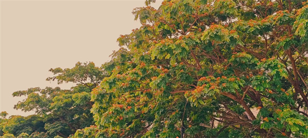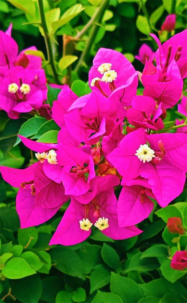 阳光倾洒,三角梅如燃烧的火焰,于枝头艳丽绽放,花瓣的纹理清晰可见,尽显生机。一旁的大树枝叶繁茂,绿意与橙花交织,似在诉说岁月的蓬勃。每一抹色彩、每一片花叶,都勾勒出自然的美妙,让人心醉神迷,沉浸于这方充满活力的天地,不舍离去。