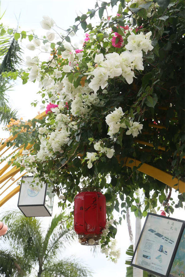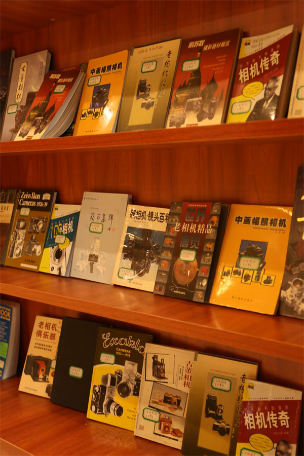 走进这方天地,仿若踏入时光与知识交织的回廊。陈旧的摄影杂志与书籍静静陈列,泛黄的纸张、复古的封面,诉说着摄影艺术的往昔岁月,每一页都藏着光影的故事。而抬眼间,三角梅绚烂盛放,红白花朵与灯笼相映成趣,为这份文艺气息添上一抹自然的明艳。在这书影与繁花共舞之处,心灵也寻得了宁静与滋养。