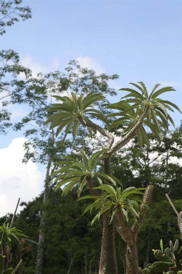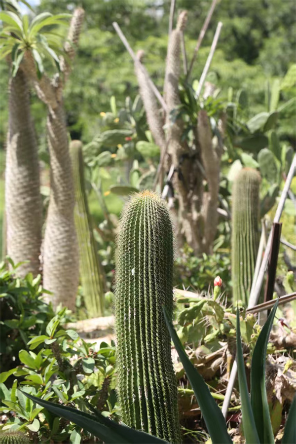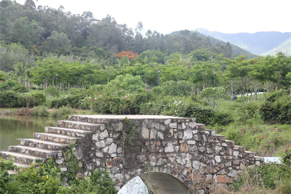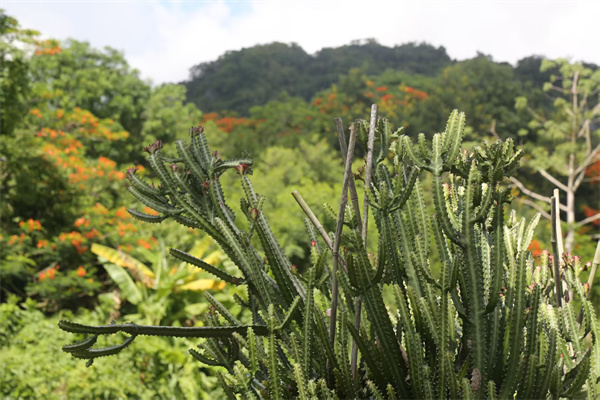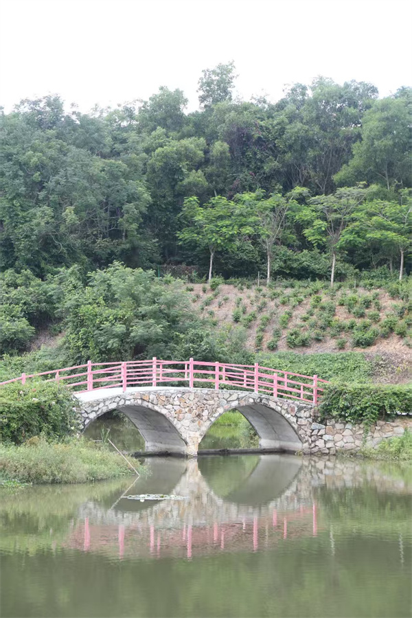漫步在这方小天地,看虎刺梅绽出粉白小花,仙人掌舒展带刺身躯,三角梅热烈盛放。石桥静卧水面,远山与蓝天白云相映,每一处自然景致,都在轻声诉说着宁静与美好,把身心浸在这悠然里,烦恼悄然散场 。