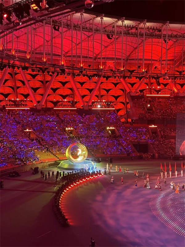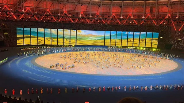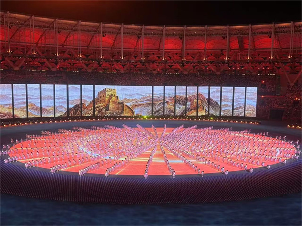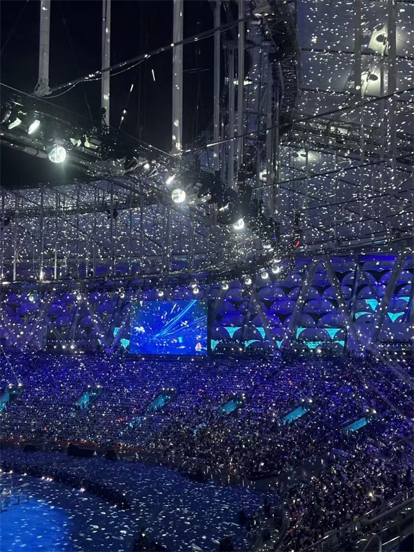 我几次被现场的表演所震撼,现场每一名观众都成为开幕式“主角”,全场万人合唱,一起热情呐喊,我们共同感受着祖国的强盛与繁荣,让我热泪盈眶,璀璨的灯光、震撼的音效、精美的舞台效果与科技的碰撞的方式,通过演出展示给全国。开幕式多处彰显了我们的创新能力和高科技应用。这是一次令人难忘的视听盛宴,它展示了我们祖国的强大和创新力。我为能见证这个历史时刻感到无比荣幸和自豪。