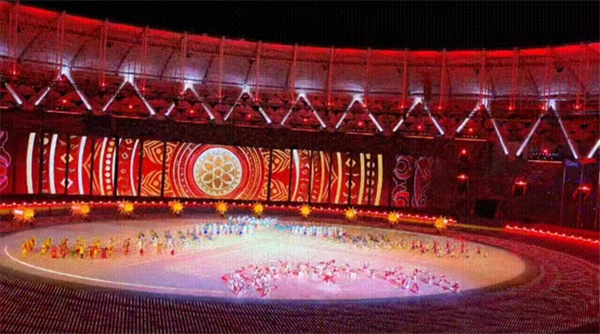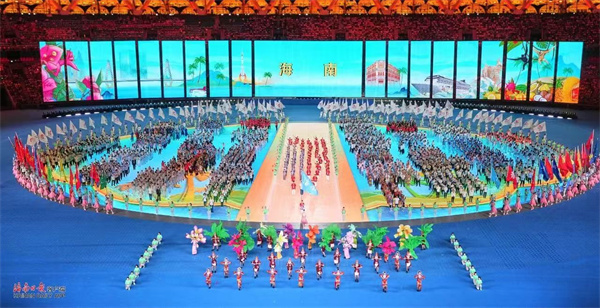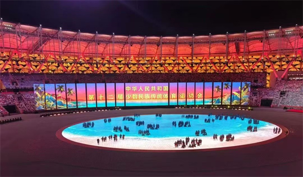21时中华人民共和国第十二届少数民族传统体育运动会正式开幕!刹那间,掌声、欢呼声响彻夜空,三亚市体育中心成为欢乐的海洋。
