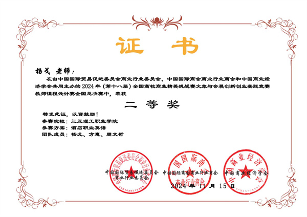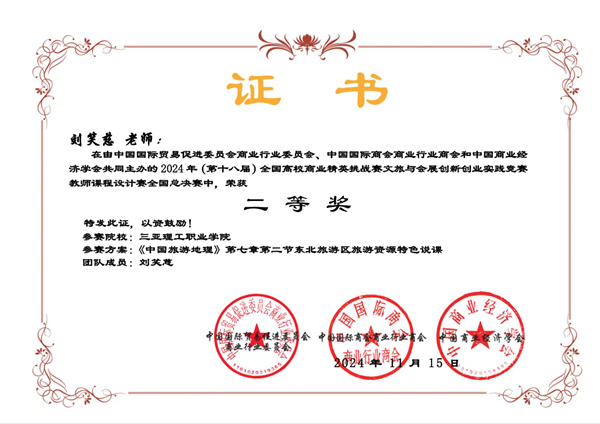 在本届竞赛的教师课程设计赛全国总决赛中学校参赛教师团队凭借出色的课程设计理念和实践成果,成功夺得三项二等奖。这一成绩不仅体现了学校教师在课程设计方面的专业素养和创新精神,也为学校在文旅与会展教育领域的持续发展奠定了坚实基础。