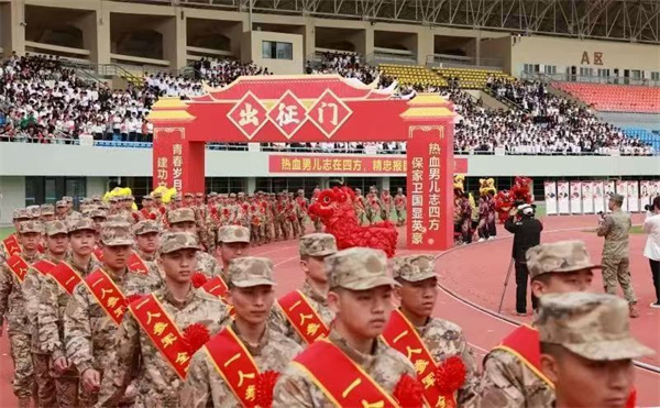 吉阳区2025上半年新兵入伍欢送仪式现场