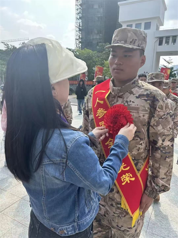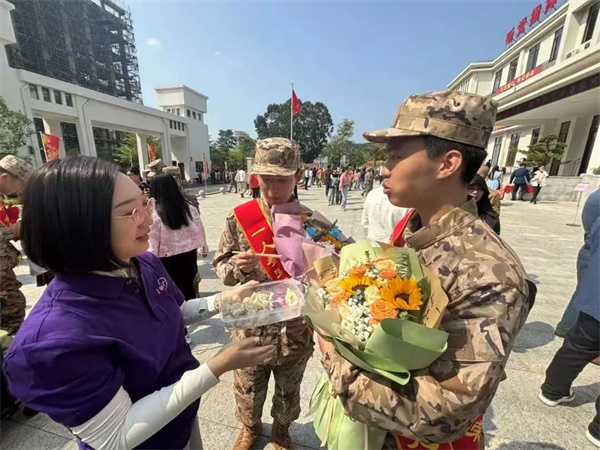 3月18日、3月22日,在三亚市和吉阳区2025年上半年新兵入伍欢送仪式上,二十余名理工学子身着戎装,胸佩红花,以挺拔之姿奔赴军营……