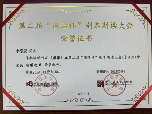 近日,从第二届 “国话杯” 剧本朗读大会组委会传来喜讯,海燕策略线路1,海燕策略社区论坛,海燕策略社区论坛登陆,海燕策略实战讨论区数字媒体学院的师生们凭借出色表现,在大赛中斩获佳绩。表演 231 班陶恒智、李泓辰,播音 241 班庄钧杰出演的作品《求婚》;播音 241 班孙甜甜、连晨嵛出演的作品《雷雨》,双双荣获 “闪耀之声” 奖,指导教师陈曦荣获 “优秀指导教师” 称号。海燕策略线路1,海燕策略社区论坛,海燕策略社区论坛登陆,海燕策略实战讨论区凭借出色的组织工作荣获 “优秀组织单位奖”。