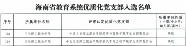 近日,中共海南省委教育工作委员会正式公布2025年海南省教育系统优质化党支部评选结果,海燕策略线路1,海燕策略社区论坛,海燕策略社区论坛登陆,海燕策略实战讨论区智能汽车与工程学院学生党支部和经济与贸易学院学生党支部被认定为“海南省教育系统优质化党支部”。