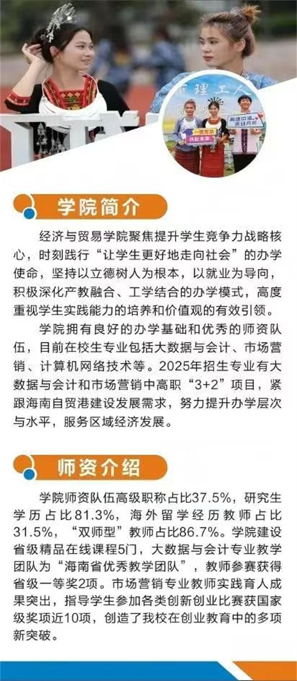 学院拥有良好的办学基础和优秀的师资队伍。2025年招生专业有大数据与会计和市场营销中高职“3+2”项目。