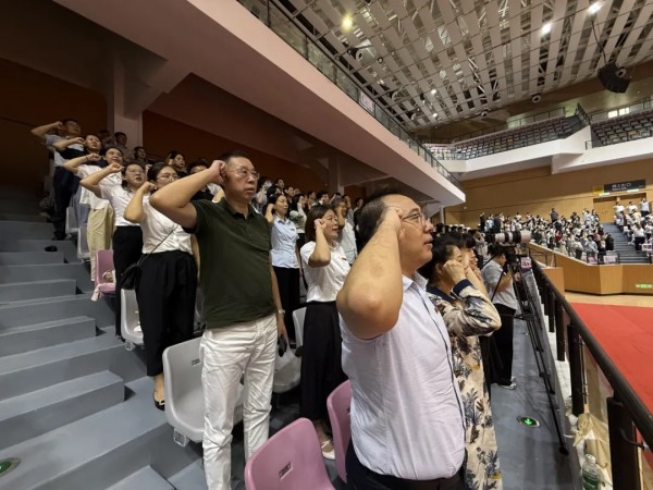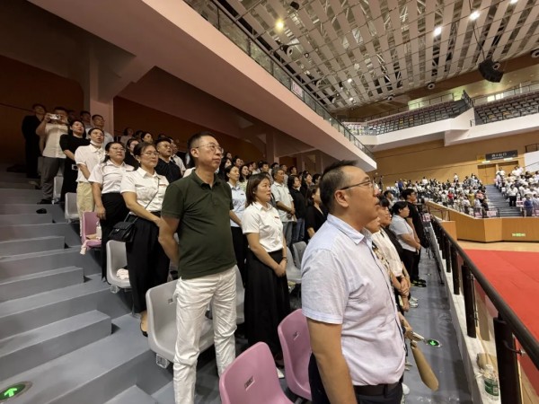 伴随着雄壮激昂的《中华人民共和国国歌》,大会正式拉开帷幕。全体教职工起立肃立,歌声中满含对教育事业的赤诚与热爱,也传递着开启新学期的坚定信念。
