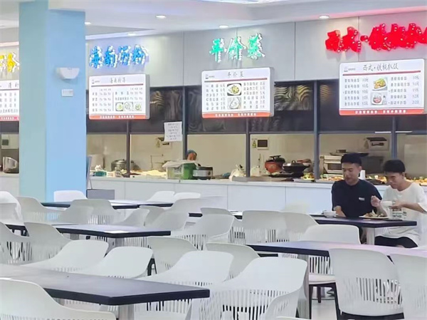 食堂里,课后的学子们分享着上课的收获,餐盘里的美食与耳边的笑声,让开学的第一天更添暖意。