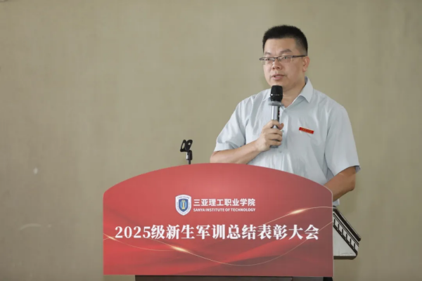 吉阳区人民武装部王三品参谋肯定新生训练成果,希望大家将军训精神转化为成长动力。