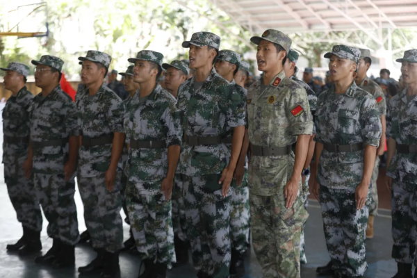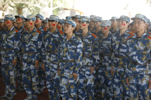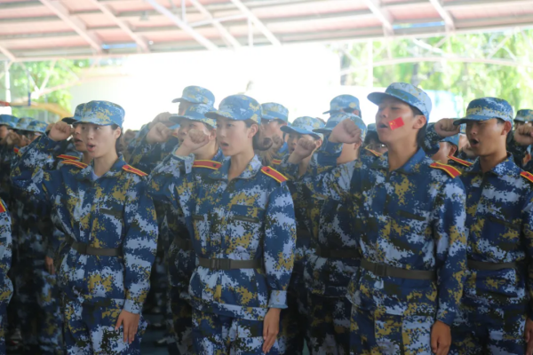 在教官高子溢的带领下,全体新生庄严誓师,铮铮誓言彰显青春担当。