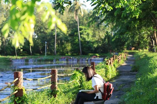 学校位于白鹭溪畔,与落笔峰相邻为伴,湖光山色、草长莺飞,丽景怡人。